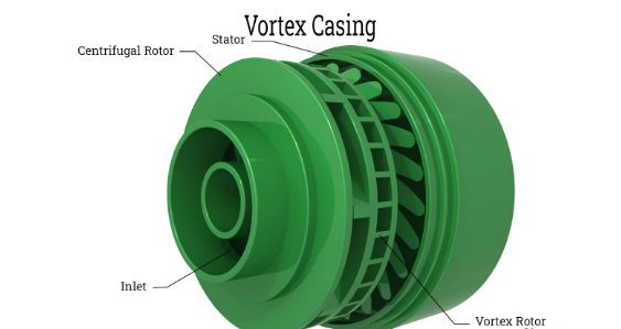 該外殼是一個圓形腔室,位于外殼和葉輪之間。來自葉輪的流體必須先通過渦流室,然后再通過蝸殼。速度能量已轉(zhuǎn)化為壓力,與蝸殼相比具有良好的效率。